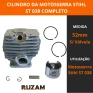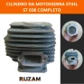 Kit completo para reposição do conjunto de cilindro e pistão da motosserra Stihl 038 Magnum e 380. Indicado para restaurar a compressão do motor e recuperar a potência do equipamento.