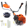 Itens e acessórios na(s) caixa(s): 1 Lâmina 2 Pontas, 1 Carretel, 1 Dosador de Combustível, 1 Cinto de Sustentação, 1 Motor 1 Chave Combinada, 1 Chave Fenda, 1 Chaves Allen. 1 Chave de Boca, 1 Suporte da Proteção da Faca, 1 Guidão Lado Esquerdo, 1 Guidão Lado Direito C/Comando, 4 Parafusos Allen 5x30mm C/Arruela Lisa e Pressão, 2 Parafusos Allen 6x25mm C/Arruela Lisa e Pressão