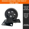 RODIZIO PVC PRETO 4 GIRATORIO C/ FREIO