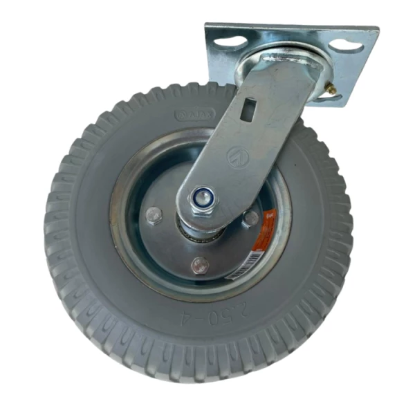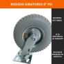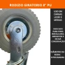 Rodízio industrial de alta resistência, equipado com rolamento de esferas e garfo em aço reforçado, desenvolvido para oferecer desempenho superior em aplicações que exigem robustez e durabilidade. Sua roda é composta por pneu em poliuretano (PU) com aro em chapa de aço, sem câmara de ar, garantindo maior segurança e menor necessidade de manutenção. Indicado para uso em pisos irregulares, abrasivos ou em más condições, proporciona movimentação suave, excelente absorção de impactos e alta resistência ao desgaste, mesmo em ambientes industriais severos. É ideal para equipamentos e estruturas com cargas leves e médias, onde confiabilidade e facilidade de deslocamento são essenciais. Compatível com diversos tipos de piso, como metálico, asfáltico, cerâmico, concreto liso ou rústico, madeira e pisos desgastados. Projetado para aplicações industriais variadas, atende com eficiência às demandas do dia a dia operacional. Observação importante: não é recomendado manter o rodízio parado por longos períodos com carga aplicada. Detalhes técnicos do produto Código: A08226-PUG Referência padrão: FS 2504 PU R Diâmetro da roda: 8 polegadas Largura da banda: 45 mm Diâmetro do furo do eixo: 3/4" Espessura do garfo: 4,75 mm Espessura da placa: 4,75 mm Altura total do rodízio: 245 mm Capacidade de carga: 100 kg