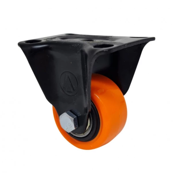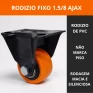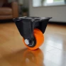 Produzido com roda em PVC laranja e núcleo em polipropileno preto, este rodízio conta com rolamento duplo de esferas, garantindo deslocamento leve, sem esforço e sem marcar o piso.