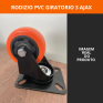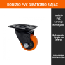 A roda é fabricada em PVC com núcleo de polipropileno preto, oferecendo boa resistência ao desgaste e não marcando o piso. O sistema com rolamento duplo de esferas garante giro leve e movimentação mais macia, reduzindo esforço no deslocamento.